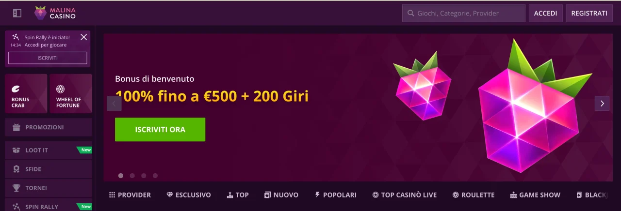| Sito web | malina-casino-italy.com |
